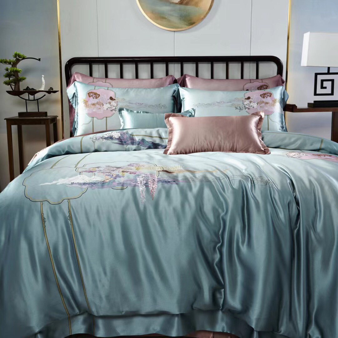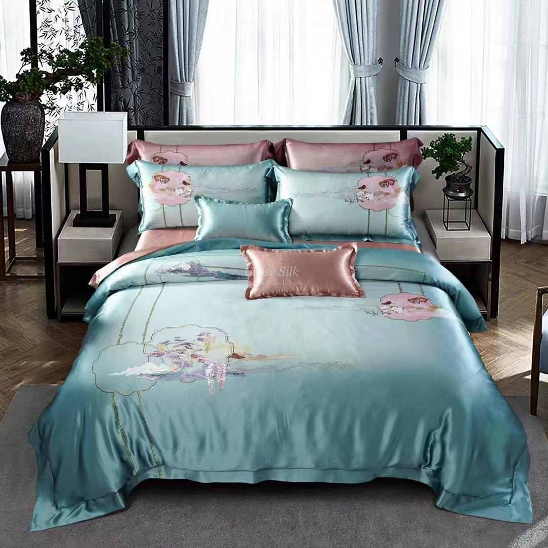 SCENERY BLUE - 25 Momme Mulberry Silk Bedding,Silk Duvet Cover, Silk Fitted Sheet, Silk Flat Sheet, Silk Pillowcase, 100% SILK
