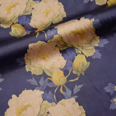 XLSSDMDH - PIZI mud silk satin fabric, 60 Momme digital print peony, 120cm wide by the Yard
