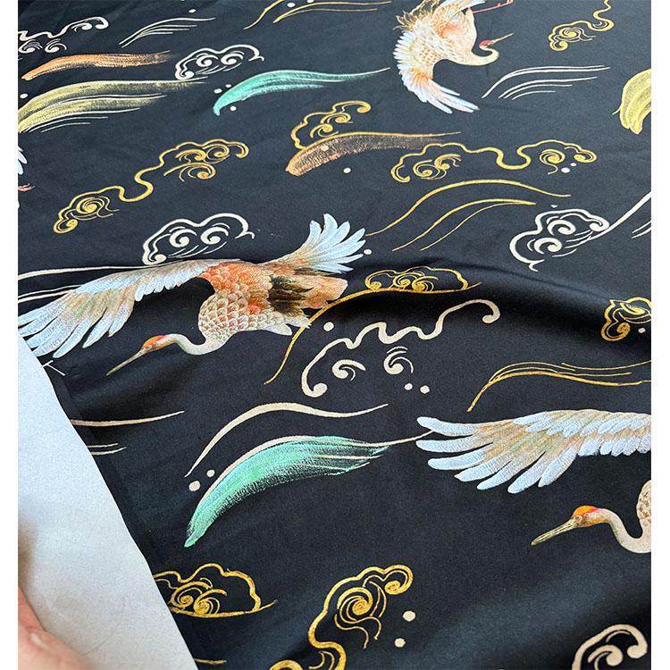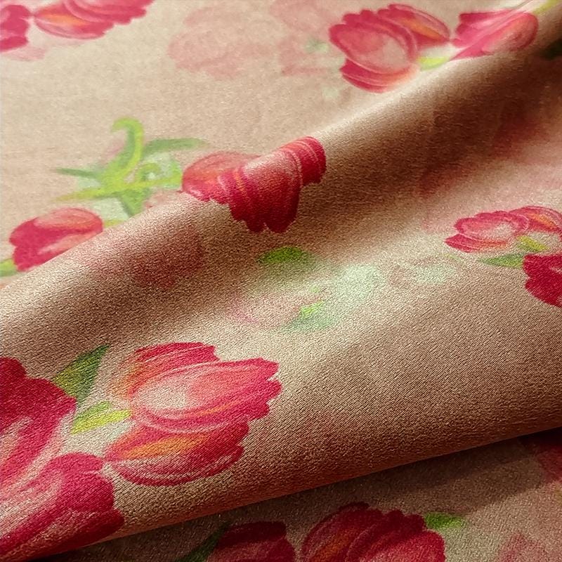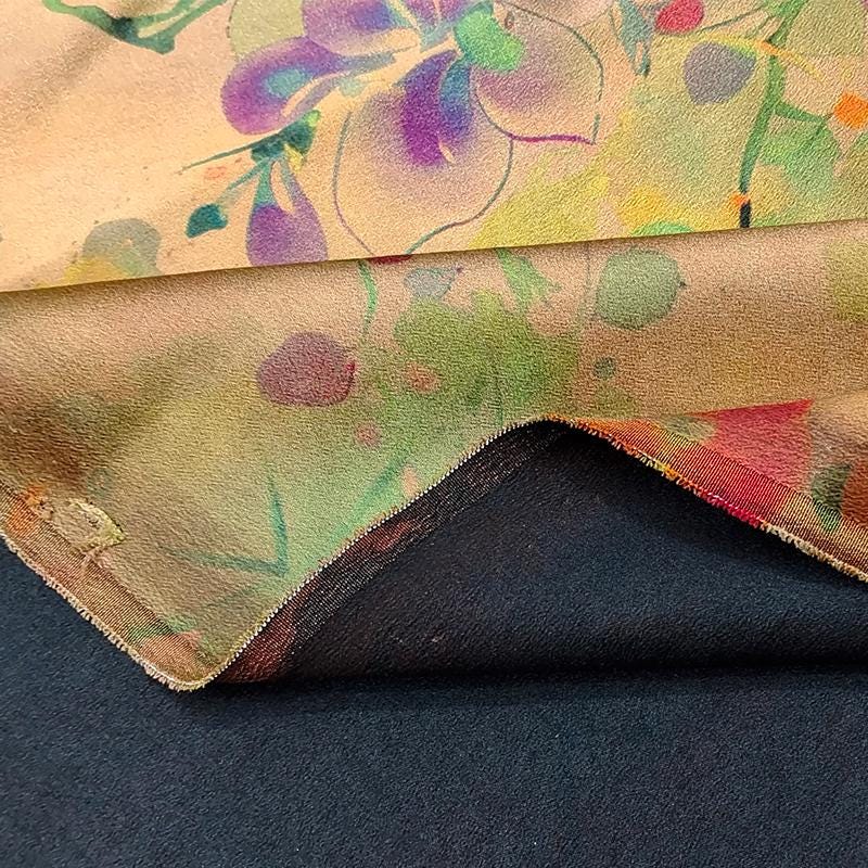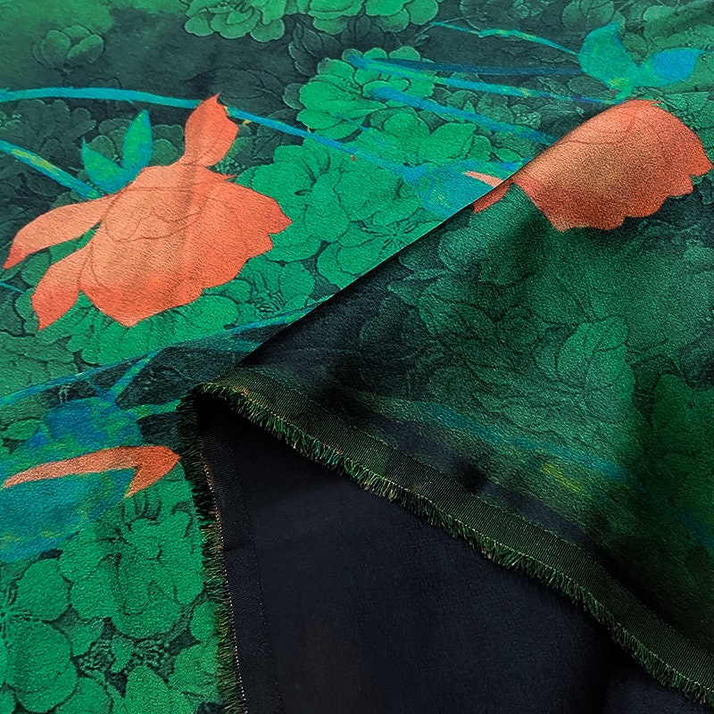 A luxurious silk with a smooth drape and soft sheen, traditionally crafted using ancient mud dyeing techniques. Now enhanced with modern digital printing technology, it features vivid, intricate patterns that go beyond classic black and brown earth tones—blending vintage charm with contemporary style.