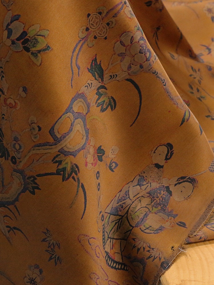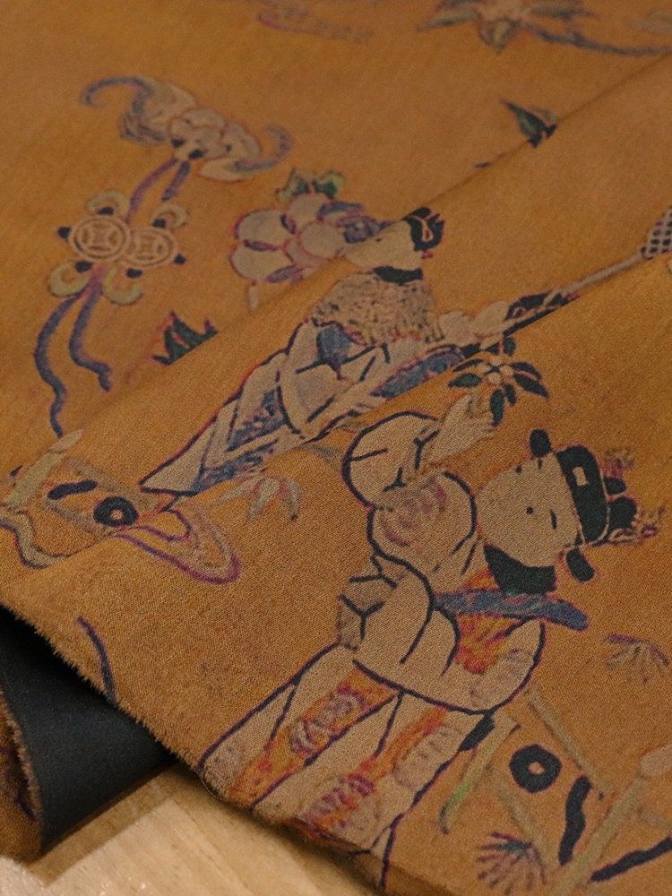 A luxurious silk with a smooth drape and soft sheen, traditionally crafted using ancient mud dyeing techniques. Now enhanced with modern digital printing technology, it features vivid, intricate patterns that go beyond classic black and brown earth tones—blending vintage charm with contemporary style.