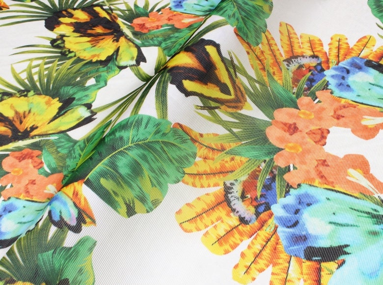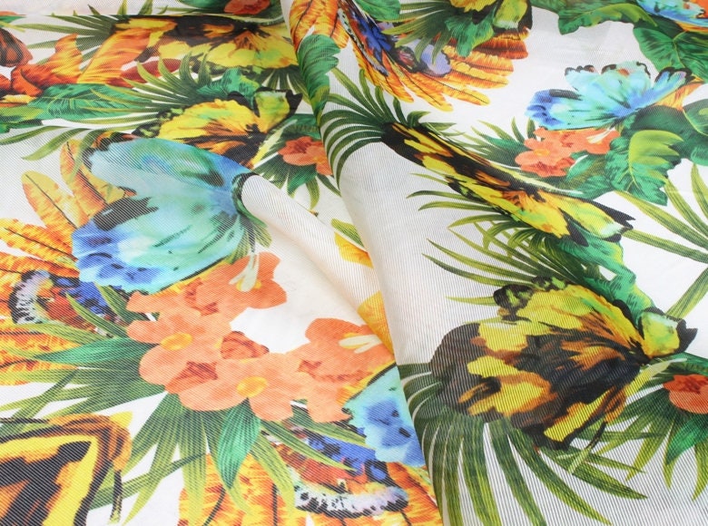 TIAOWEN - 12 momme Butterfly Floral Print Stripe Silk Organza Fabric - 140cm wide by the Yard