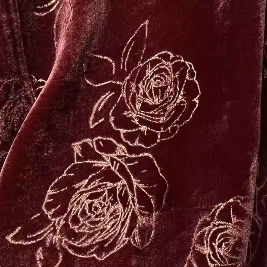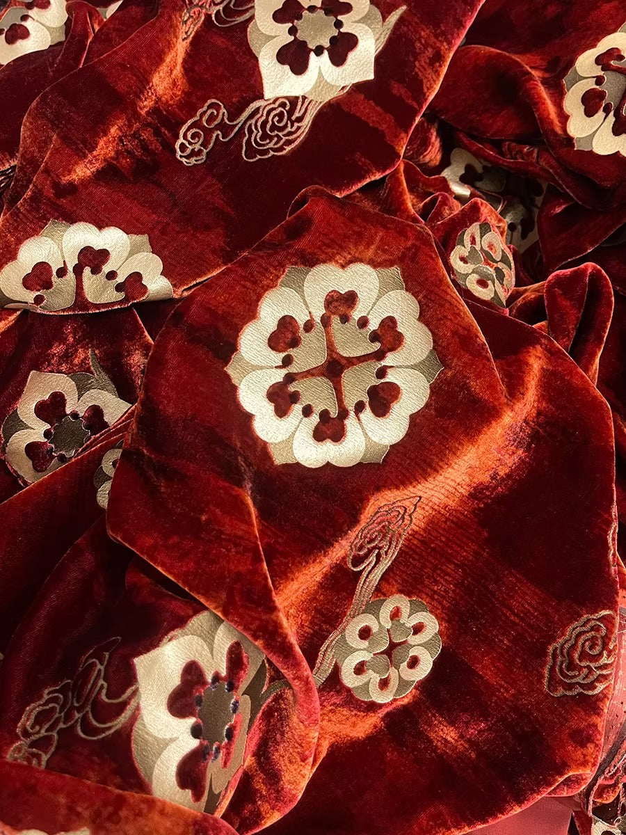 XYYHSR012 - Hot Stamping Metallic Silk Velvet Fabric, 140cm wide by the Yard