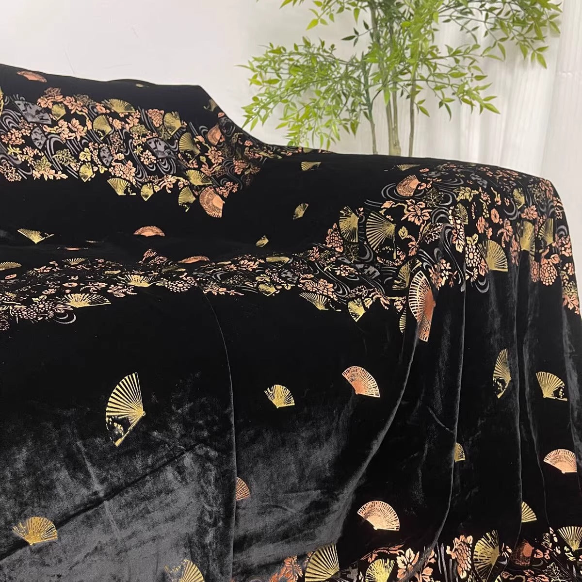 XYYHSR019 - Hot Stamping Metallic Silk Velvet Fabric, 140cm wide by the Yard