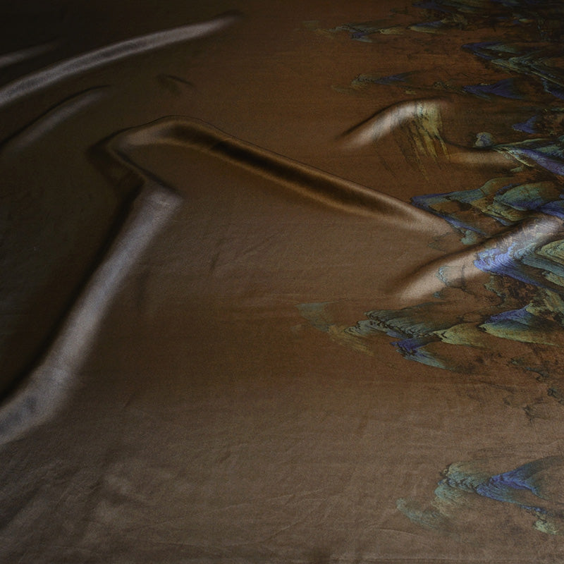 Mud Silk HUALUO is a special type of silk produced by applying plant-based dyes and a river mud coating to the HUALUO fabric. The fabric is then sun-dried and washed to remove the mud. This process is repeated several times in months, resulting in a unique and exquisite silk. The multiple layers of treatment give Mud Silk HUALUO its characteristic sheen and texture, enhancing its durability and adding a natural, earthy elegance to the already prestigious HUALUO fabric.