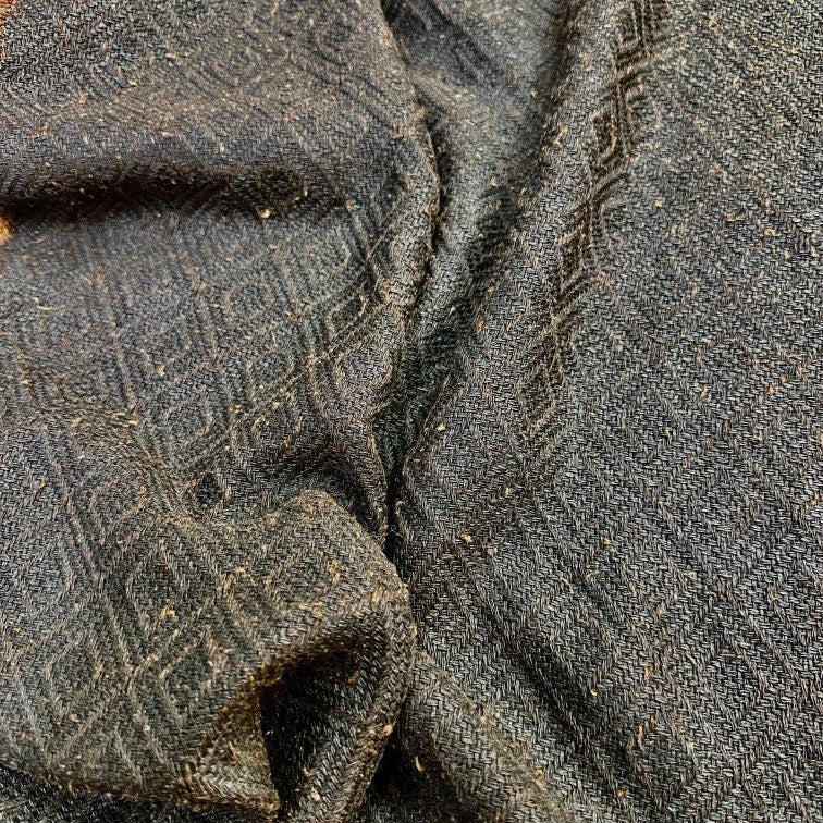 Special Checks - 50 Momme Handmade Coffee Brown Jacquard Tussah Mud Silk Fabric - 97cm wide by the Yard