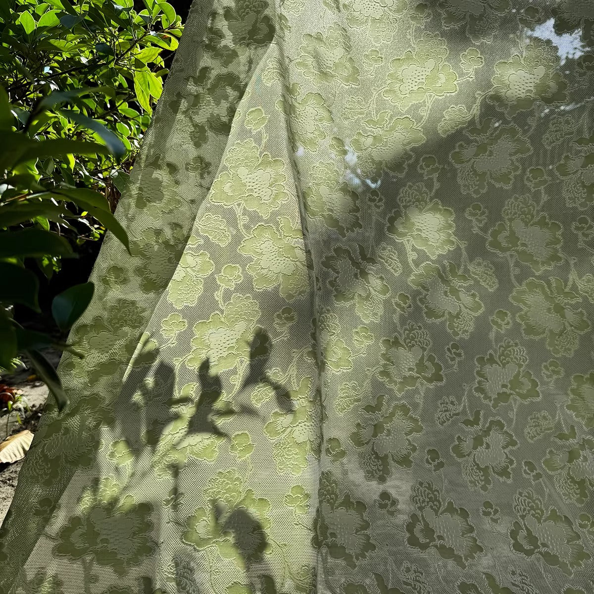XYSJLHD - Leno silk fabric, yarn dyed 25 momme 114cm wide, green butterfly, 100% mulberry silk