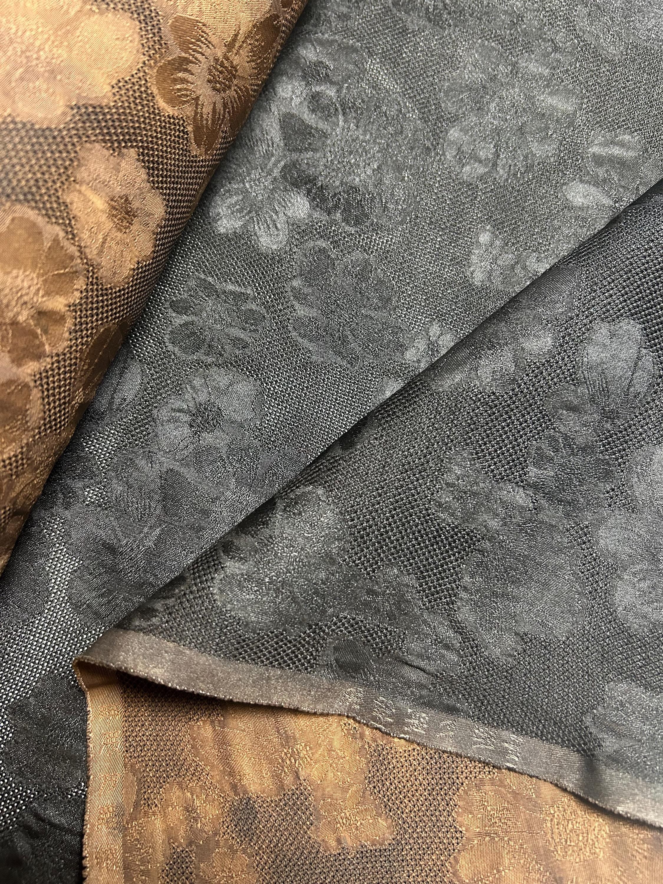 LJJLENO - 36 Momme Heritage Handmade Jacquard Black & Brown HUALUO Mud Silk Fabric - 90cm wide by the Yard