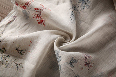MULAN Autumn Chrysanthemum Printed Beige Ramie fabric By the Yard