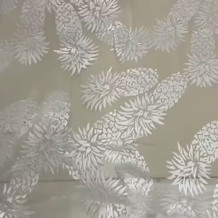 BOLUO - White Pineapple Sheer Burnout Silk Devore Satin Fabric - 138cm wide by the Yard