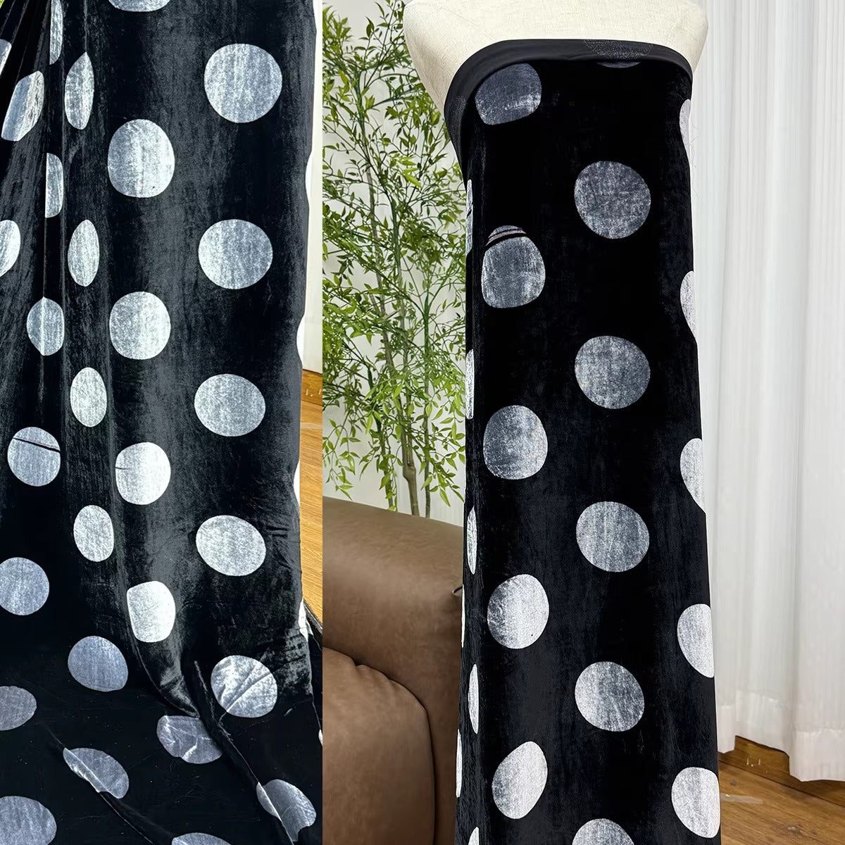 Silk velvet is a luxurious textile made from silk yarns woven into a soft, plush pile, offering a lustrous sheen, rich colors, and a silky-smooth texture. Known for its ability to reflect light uniquely, it gives garments and décor a shimmering, elegant appearance. Commonly used in high-end fashion, evening gowns, drapes, pillows, and upholstery, silk velvet is both beautiful and durable, making it ideal for designs that require a touch of luxury and sophistication.