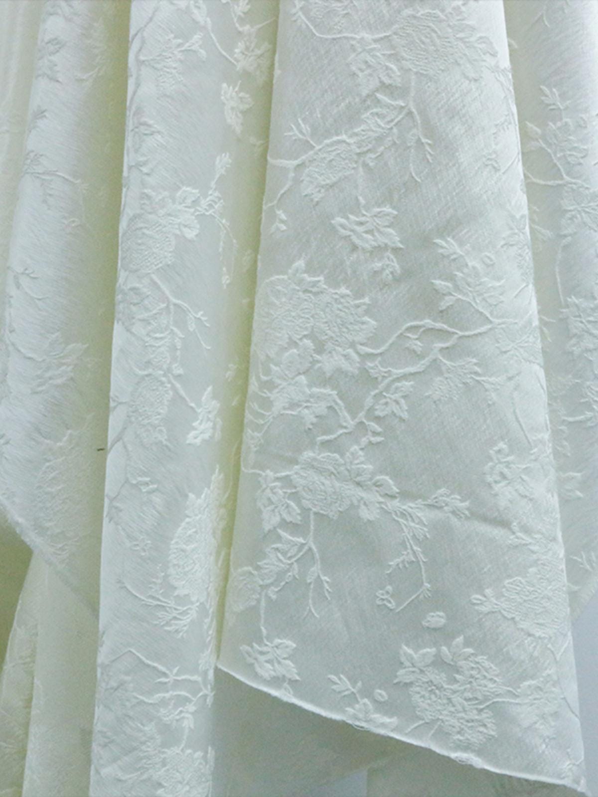 SIMOBS - 43 Momme Flowers Jacquard Mulberry Silk Wool Cotton Blend Silk Fabric - 135cm wide by the Yard