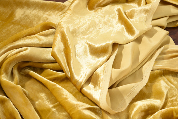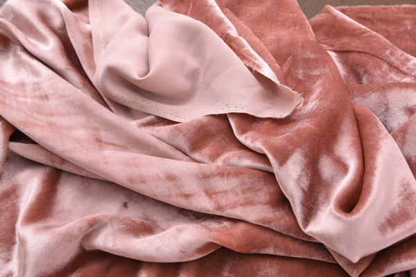 Silk velvet is a lustrous and plush fabric that is meticulously constructed by weaving silk yarns in a manner that creates a short and dense pile. This dense pile gives the fabric its distinctive softness and luxurious feel. The base fabric is made entirely from silk, which imparts its inherent qualities of breathability, smoothness, and a natural ability to drape elegantly.