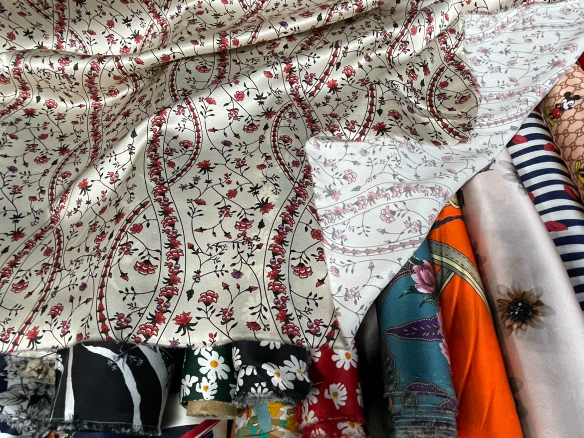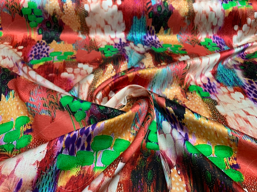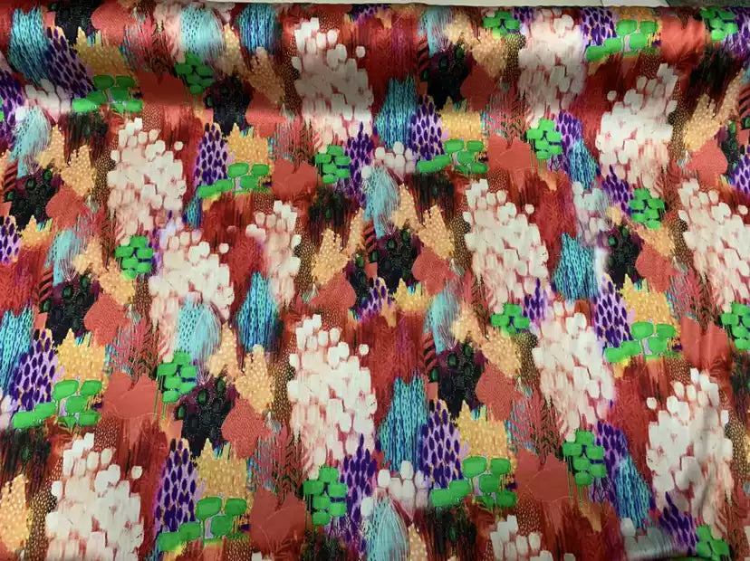 GUZHAI - 19 Momme Retro Style Dazzling Colors Pattern Digital Print Stretch Silk Satin Fabric - 140cm wide by the Yard