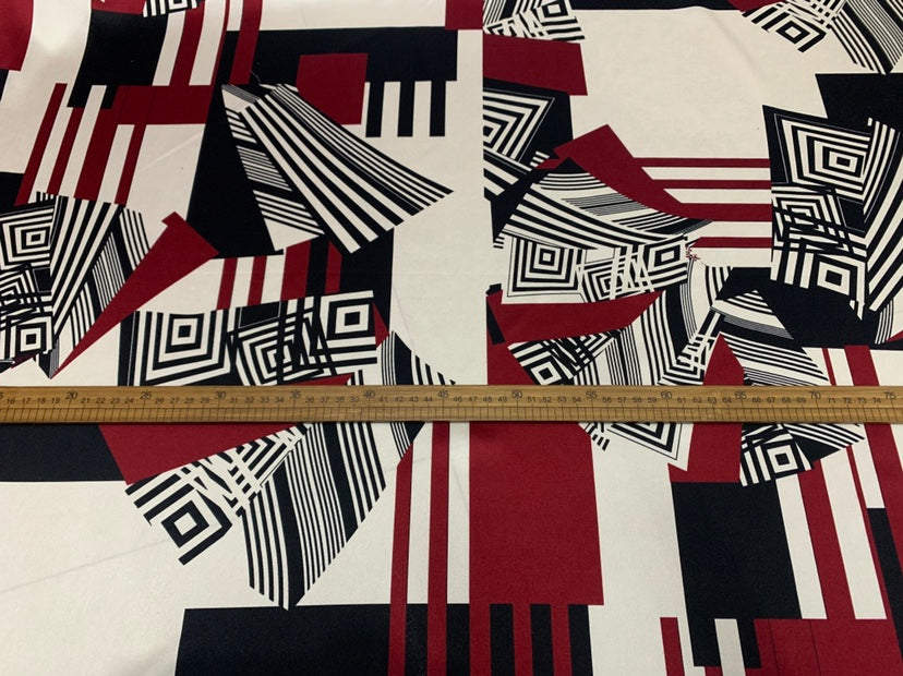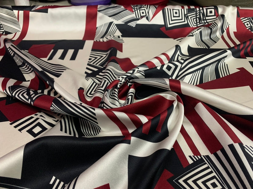 HANGIU - 19 Momme Stylish Geometry Pattern Digital Print Stretch Silk Satin Fabric - 140cm wide by the Yard