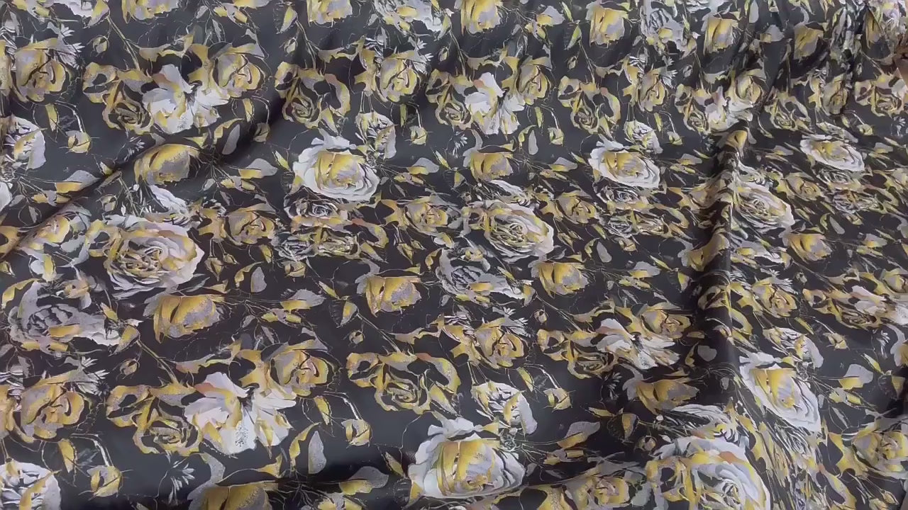 GOLDRO - 19 Momme Big Golden Rose on Black Background Pattern Digital Print Stretch Silk Satin Fabric - 140cm wide by the Yard