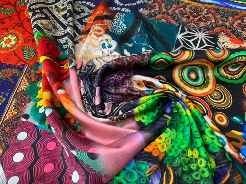 XUANCA - 19 Momme Colorful Paint Pattern Digital Print Stretch Silk Satin Fabric - 140cm wide by the Yard