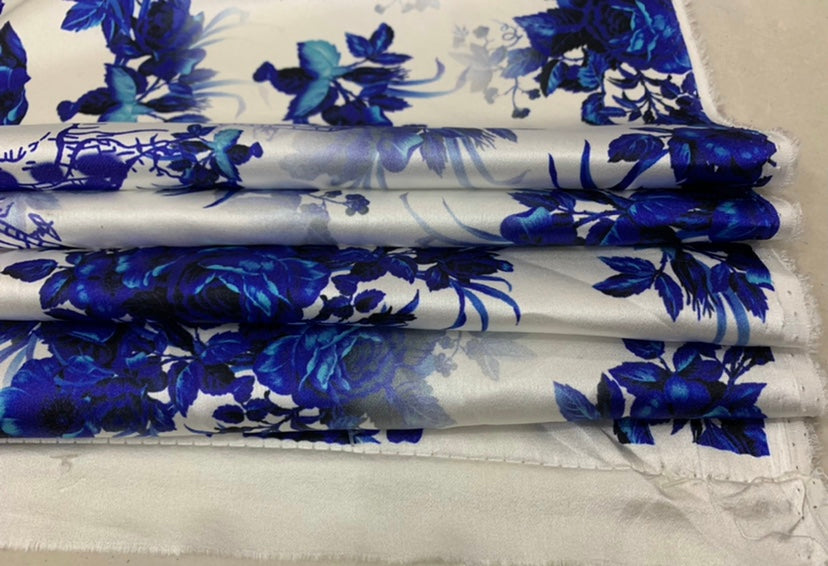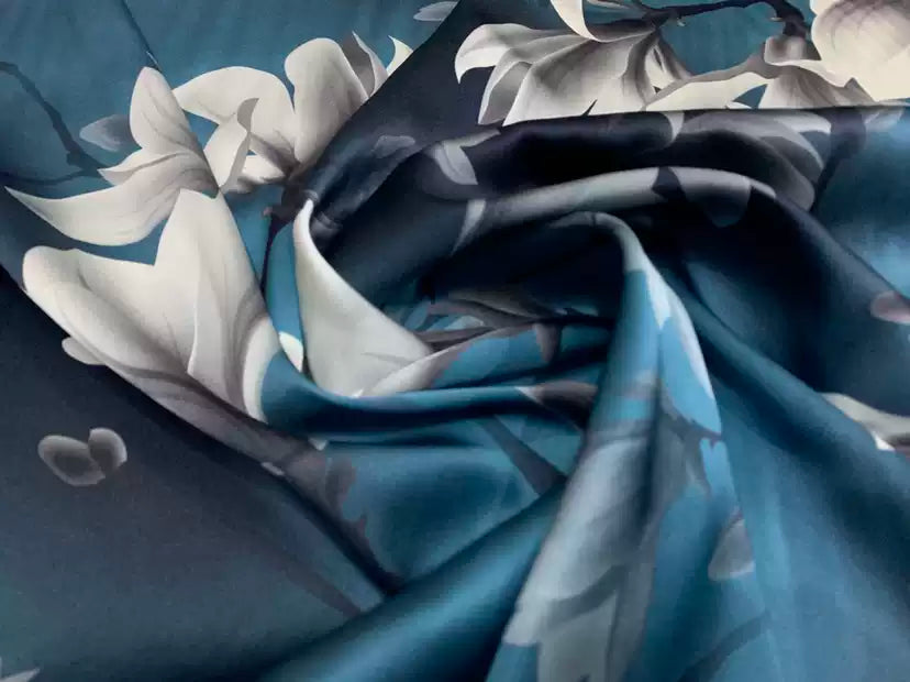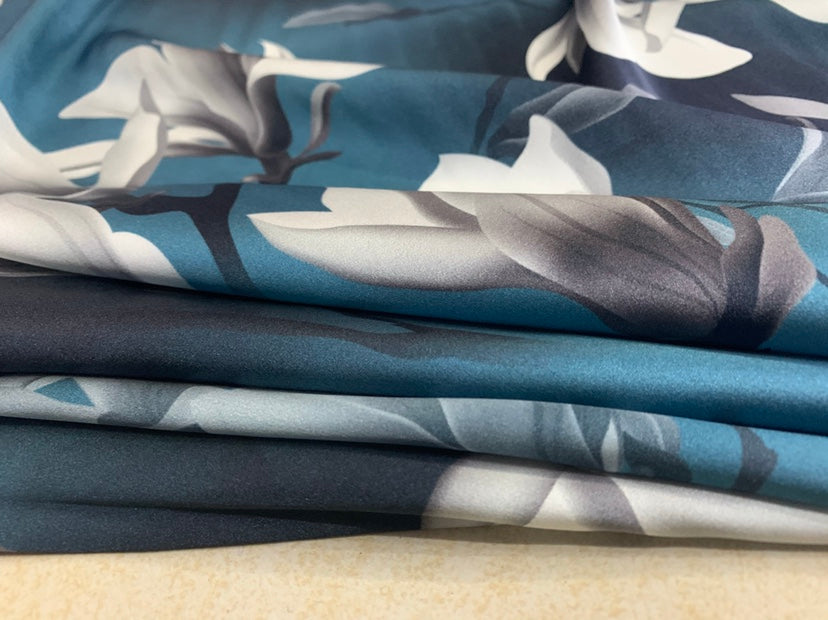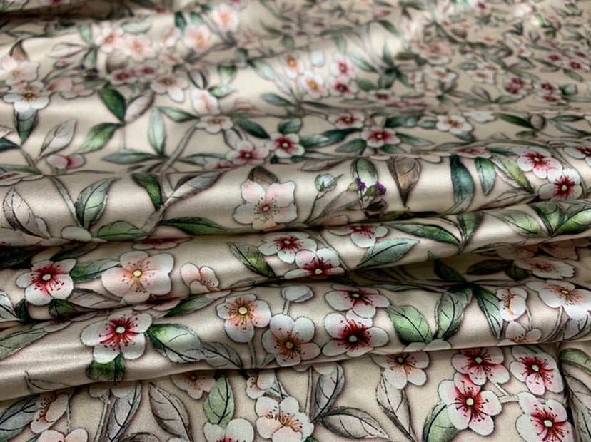 XAIOSI - 19 Momme Flower Pattern Digital Print Stretch Silk Satin Fabric - 108cm wide by the Yard