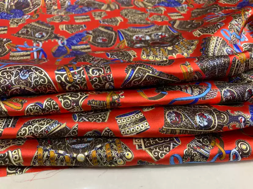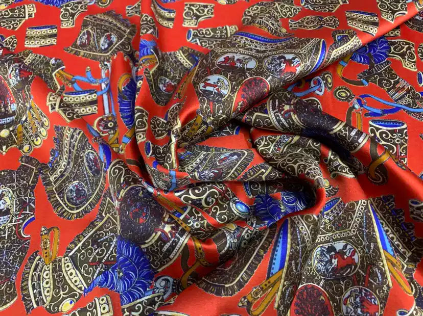ROMKJA - 19 Momme Retro Roman Armor Pattern Digital Print Stretch Silk Satin Fabric - 140cm wide by the Yard