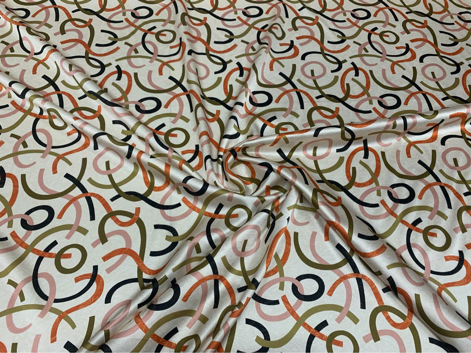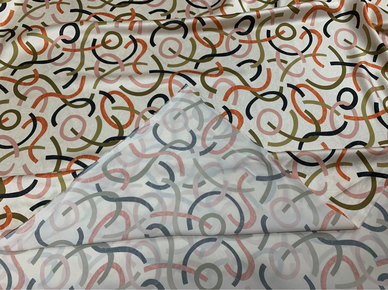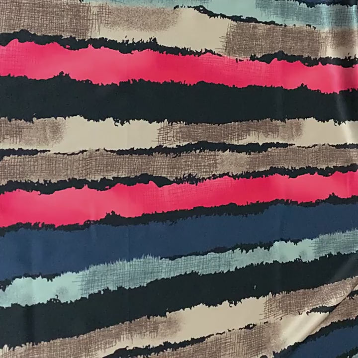 SASJIE - 19 Momme Three Color Lines Pattern Digital Print Stretch Silk Satin Fabric - 140cm wide by the Yard