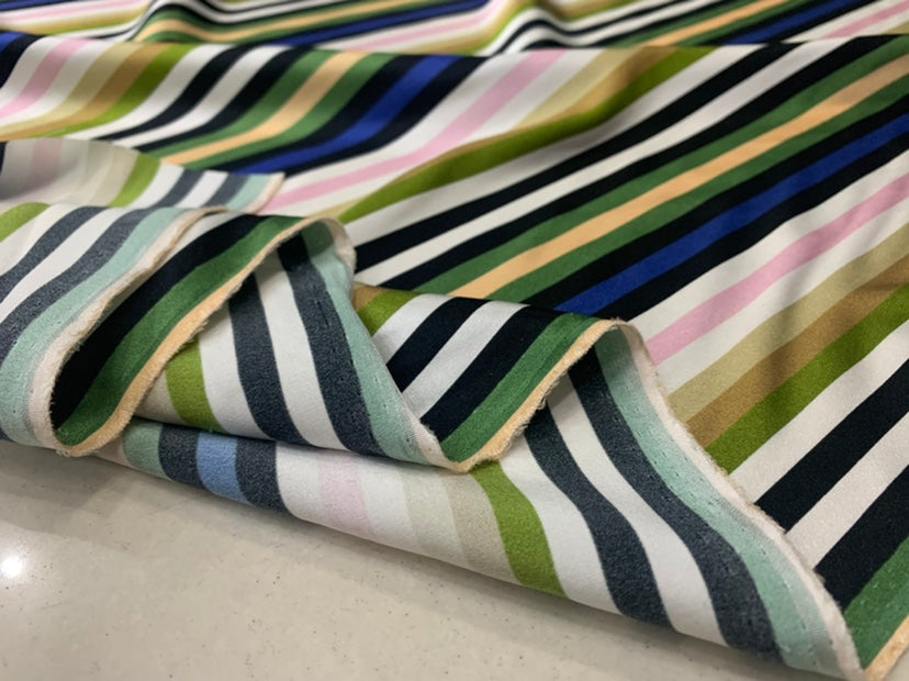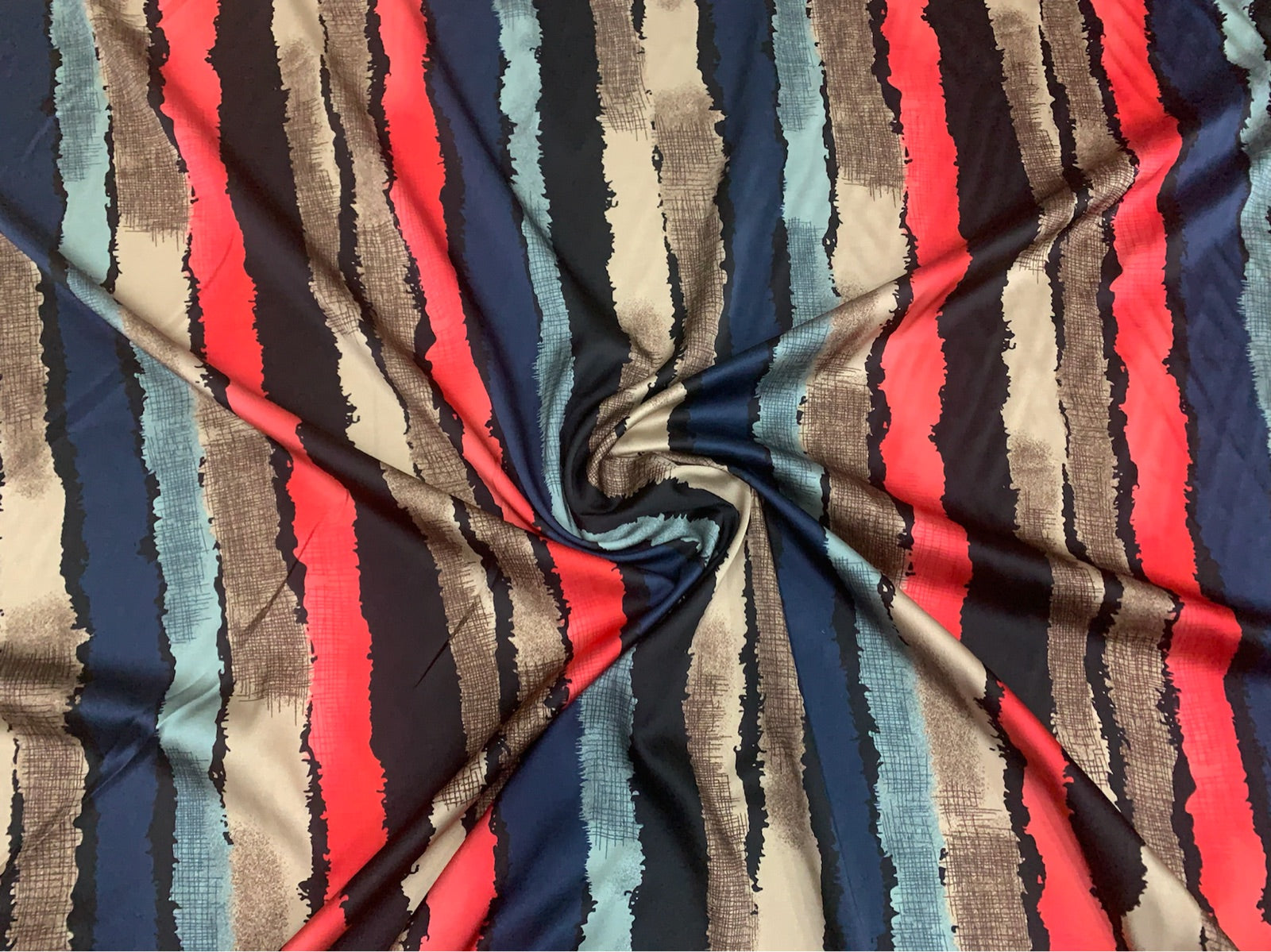 WUCSUT - 19 Momme Colorful Vertical Stripes Pattern Digital Print Stretch Silk Satin Fabric - 108cm wide by the Yard