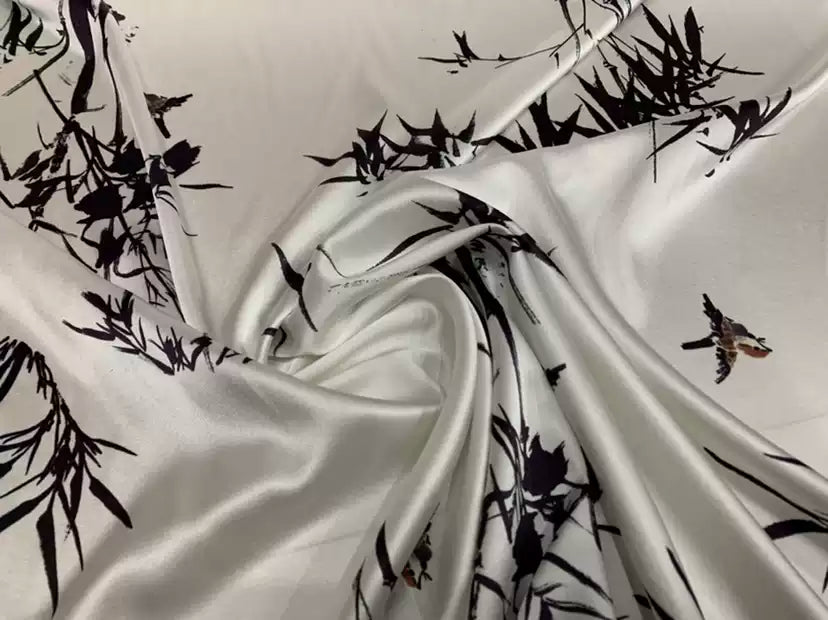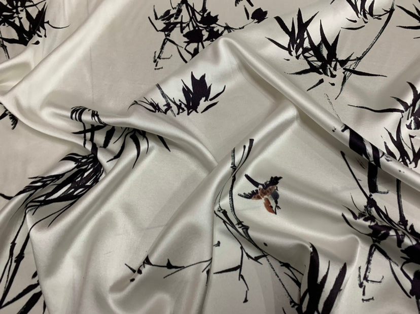 WENZUN - 19 Momme Bamboo Pattern Digital Print Stretch Silk Satin Fabric - 108cm wide by the Yard