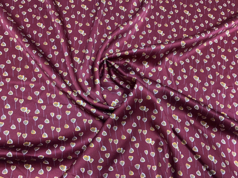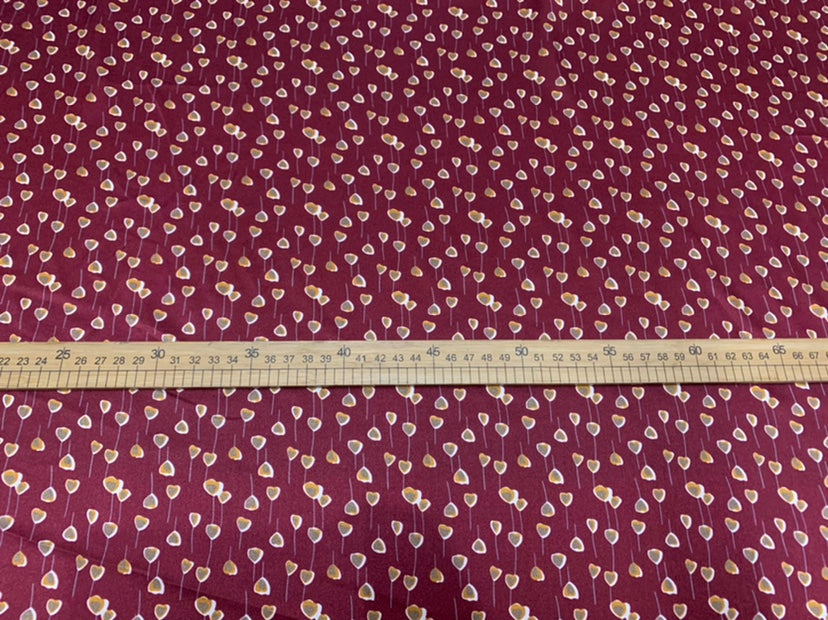 WINRED - 19 Momme Wine Red Heart Pattern Digital Print Stretch Silk Satin Fabric - 108cm wide by the Yard
