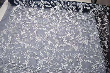 XIAOSUI - White Embroidered Silk Organza Fabric - 130cm wide by the Yard