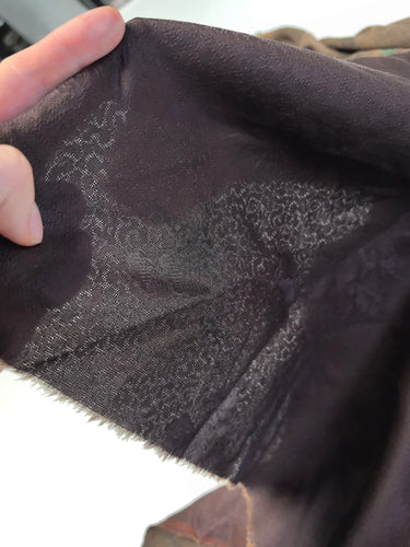 Due to its handmade procedure, all the fabrics will naturally have few black spots, white/brown marks, color stains, etc, especially on the back side of the silk. It also will have small holes, color difference and scratches on the 5cm fabric edges.