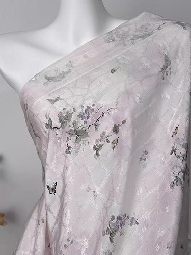 XYLN051 - Leno silk fabric with beautiful prints, Butterflies in Love with Flowers, 114cm wide by the yard