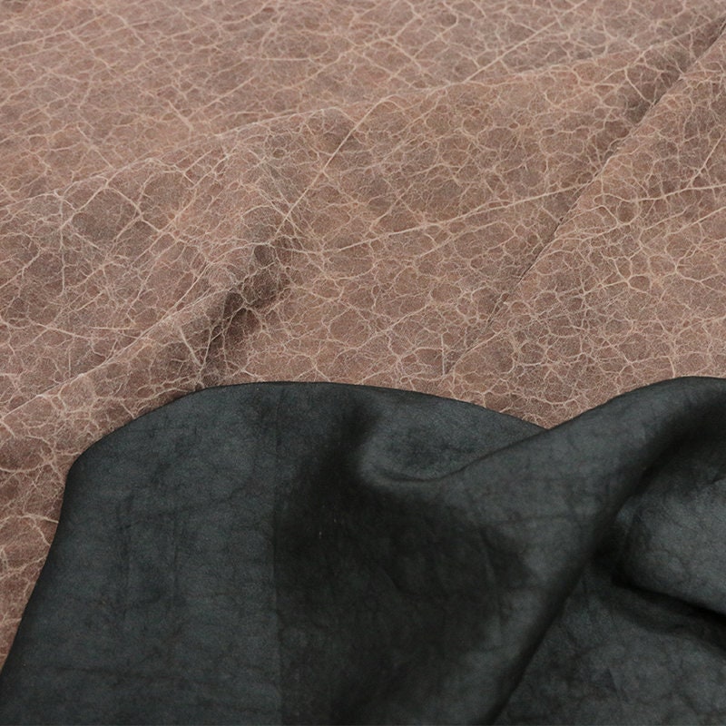 CRACKS - Black and Brown 22 Momme Handmade Plant Dye Mud Silk Fabric, 110cm by the Yard