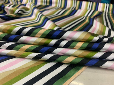 WUCSUT - 19 Momme Colorful Vertical Stripes Pattern Digital Print Stretch Silk Satin Fabric - 108cm wide by the Yard