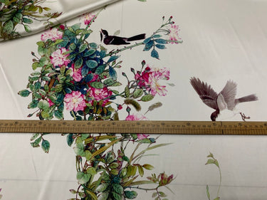XQUZTO - 19 Momme Chinese Classical Style Magpie Branch Pattern Digital Print Stretch Silk Satin Fabric - 108cm wide by the Yard