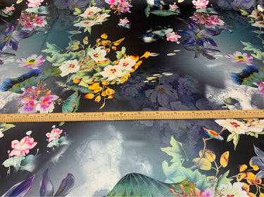 BAFAQF- 19 Momme Ink Style Colorful Flowers Blooming Peony Flowers Pattern Digital Print Stretch Silk Satin Fabric - 140cm wide by the Yard