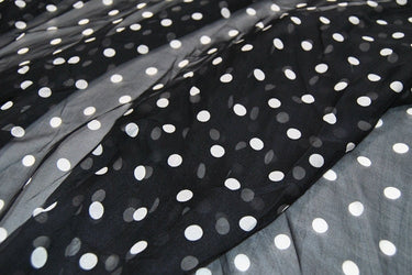 BAIBODIAN- 5.5 Momme White Polka Dots Silk Chiffon Fabric - 140cm wide by the Yard