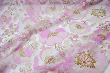 YINSU - 6 Momme Purple pink Floral Print Crinkled Silk Georgette Fabric 140cm by the Yard