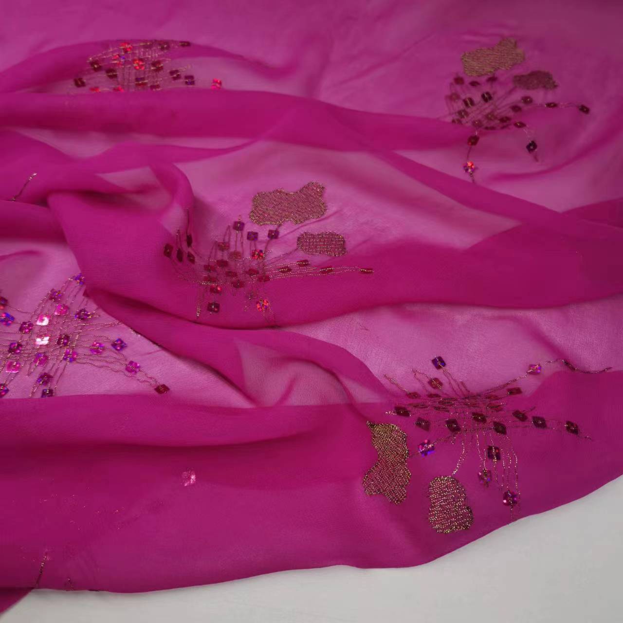 Silk Georgette is a lightweight, semi-sheer fabric known for its delicate crinkled texture and graceful drape. Made from pure silk, it has a slightly rough feel compared to other silks, giving it a distinctive, airy quality. Often used in flowing dresses, blouses, scarves, and eveningwear, Silk Georgette is perfect for creating soft, fluid silhouettes with a touch of texture. Its elegant, semi-transparent nature makes it ideal for layering and adding movement to designs.