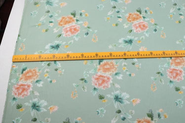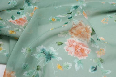 JFHLDH - 9 Momme Green-based Floral Print Silk Georgette Fabric - 137cm wide by the Yard