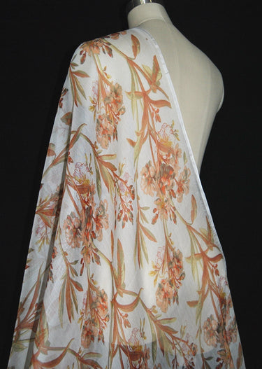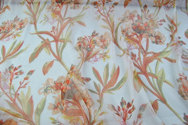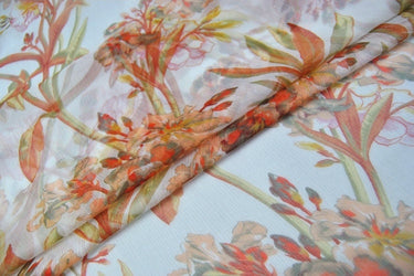 JUSE - 5 Momme Orange Flowers Crinkle Silk Georgette Fabric 135cm by the Yard