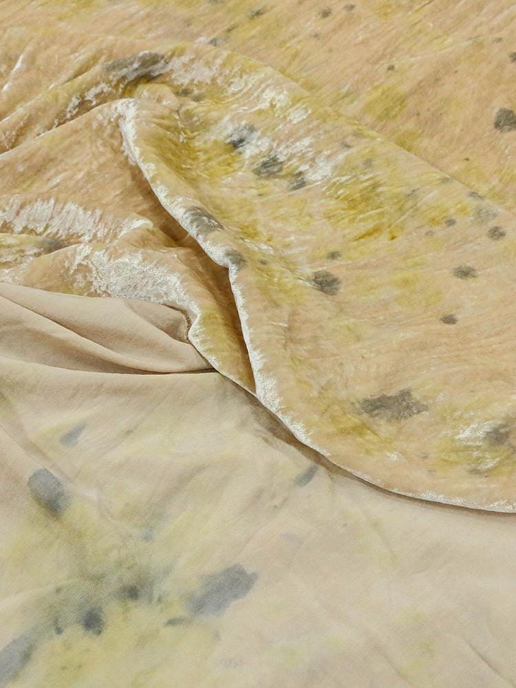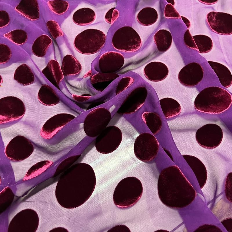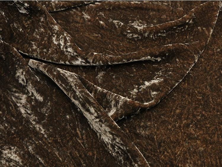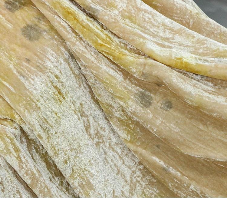 Silk velvet is a luxurious textile made from silk yarns woven into a soft, plush pile, offering a lustrous sheen, rich colors, and a silky-smooth texture. Known for its ability to reflect light uniquely, it gives garments and décor a shimmering, elegant appearance. Commonly used in high-end fashion, evening gowns, drapes, pillows, and upholstery, silk velvet is both beautiful and durable, making it ideal for designs that require a touch of luxury and sophistication.