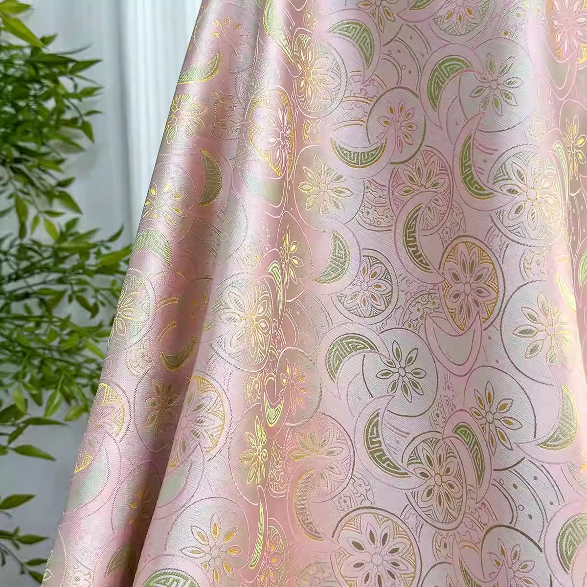 XYLDXSJ 月牙团窠粉色 - Gilt-Thread Song Brocade 织金宋锦, 38 momme 140cm wide by the yard
