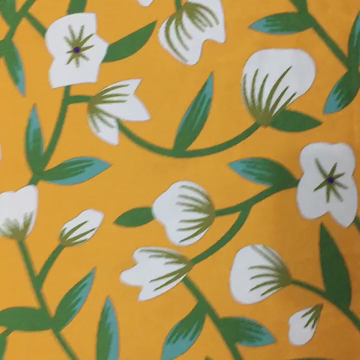 YEDILA - 19 Momme Yellow Flowers Flower Pattern Digital Print Stretch Silk Satin Fabric - 140cm wide by the Yard