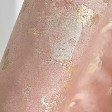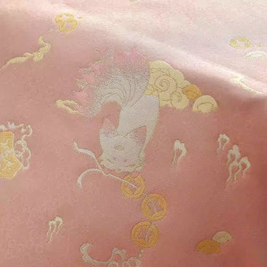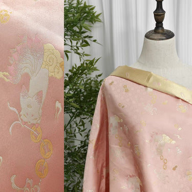 XYLDXSJ 铜线九尾狐粉色 - Gilt-Thread Song Brocade 织金宋锦, 38 momme 140cm wide by the yard