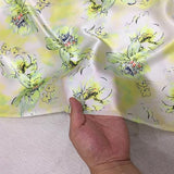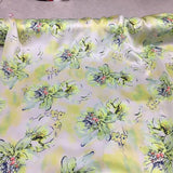 SZDSMH- 14 Momme Fluorescent Green Ink Floral Print Stretch Charmeuse Silk Satin Fabric - 114cm wide by the Yard