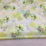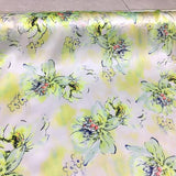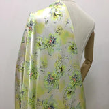 SZDSMH- 14 Momme Fluorescent Green Ink Floral Print Stretch Charmeuse Silk Satin Fabric - 114cm wide by the Yard