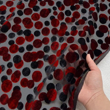 HONGYUAN - Polka Dots Sheer Burnout Silk Velvet Fabric - 114cm wide by the Yard