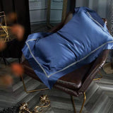 New collection Romance/Lace and Silk/25 Momme Mulberry Silk Bedding Set in Navy Blue with Beautiful Lace Deco