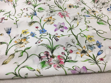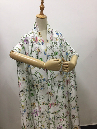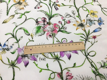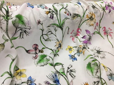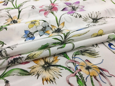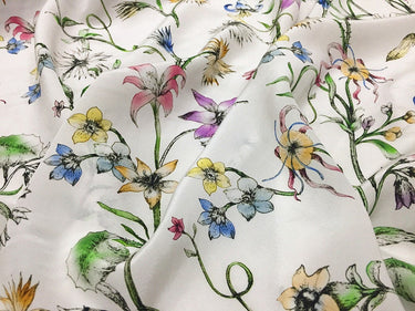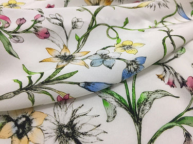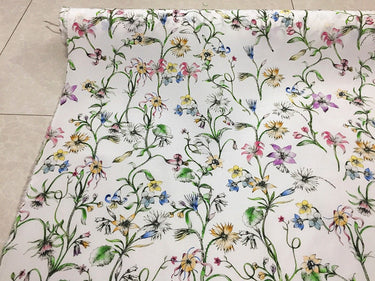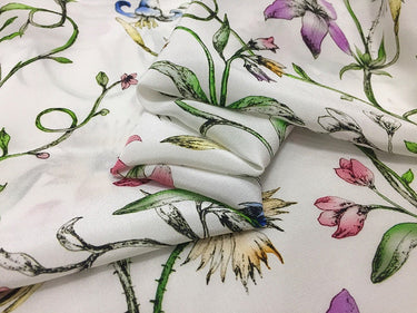 QINGXIN - 16 momme Floral Print Silk Crepe de Chine Fabric - 135cm wide by the Yard