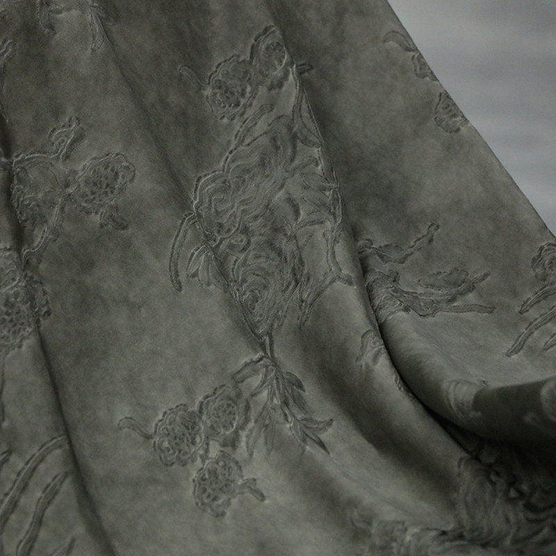 Dirty dyeing is the application of specific dyeing techniques to fabrics, so that the surface presents a mixed effect that is different from traditional dyeing, creating a strong visual impact and sense of innovation. The dirty dyeing process is used on silk fabrics, making the originally brightly colored and luxurious silk more retro, cool and wabi-sabi style.